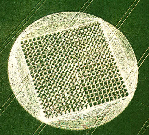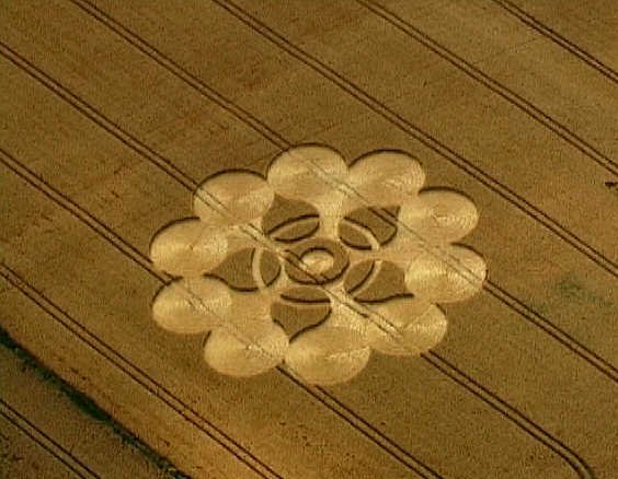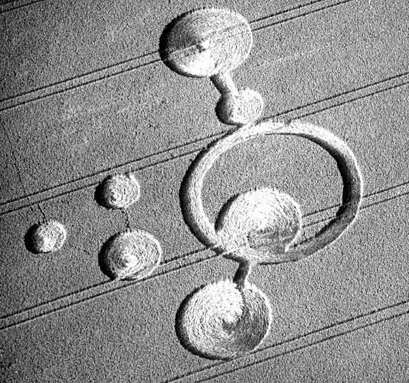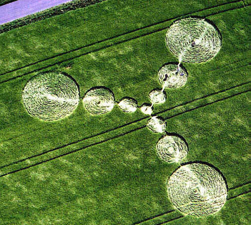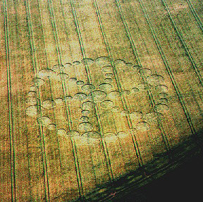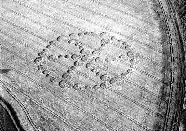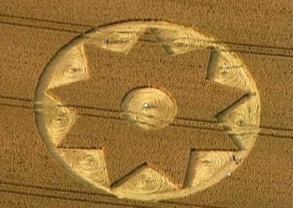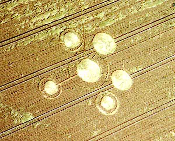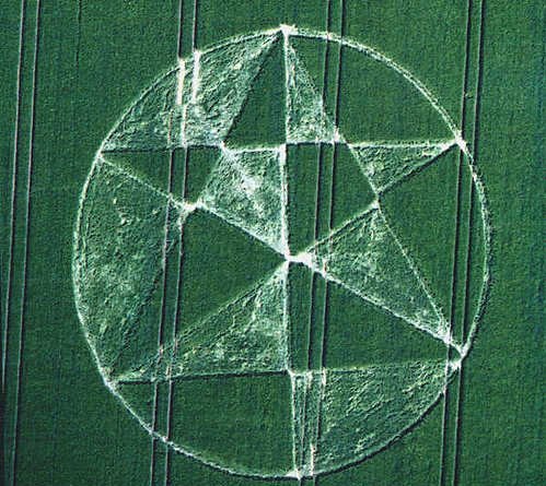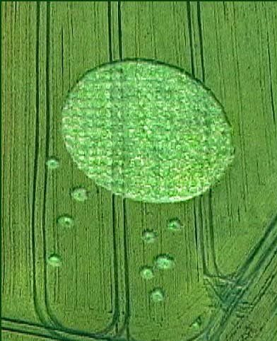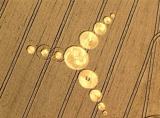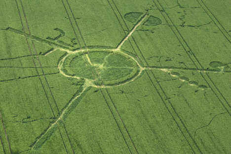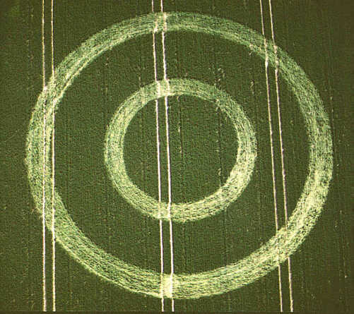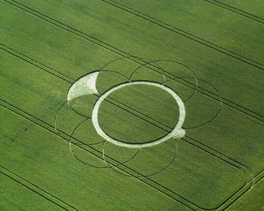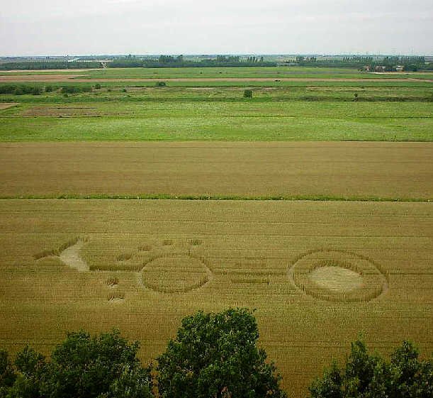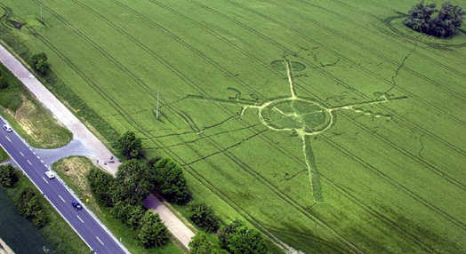 This pictures shows marks in cornfields generated by aliens using interdimensional technology.