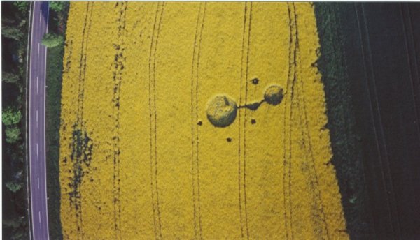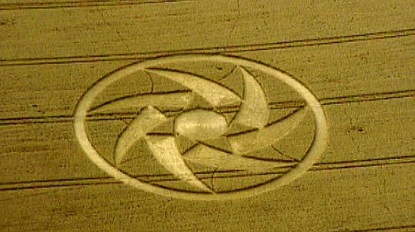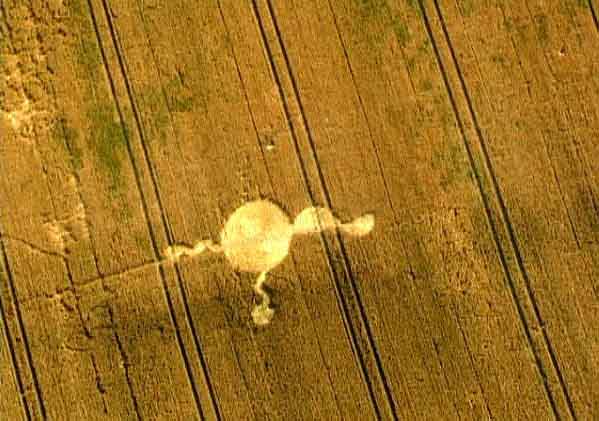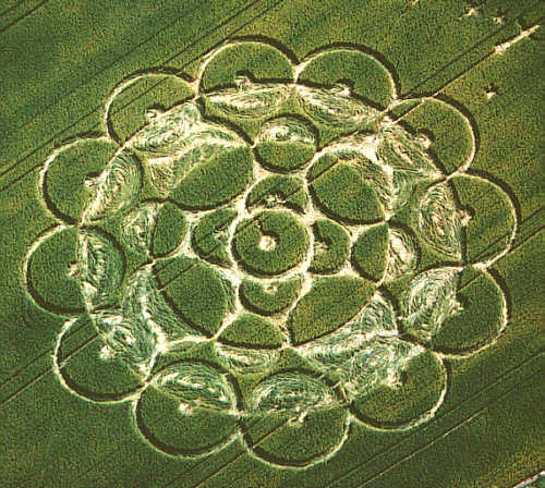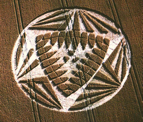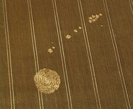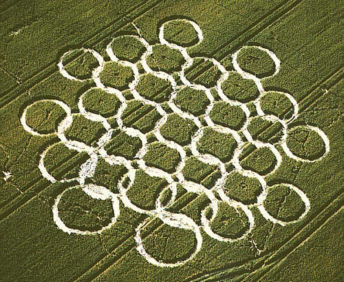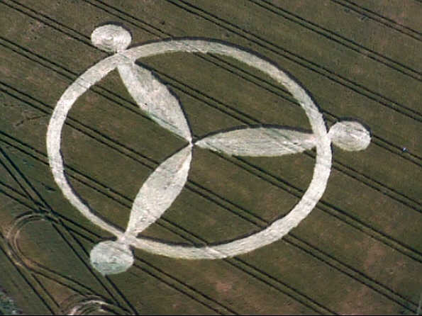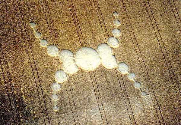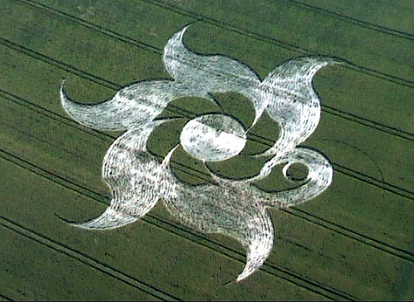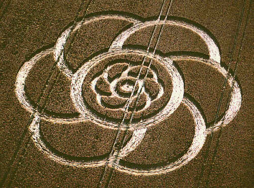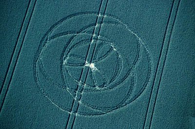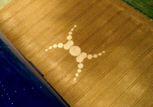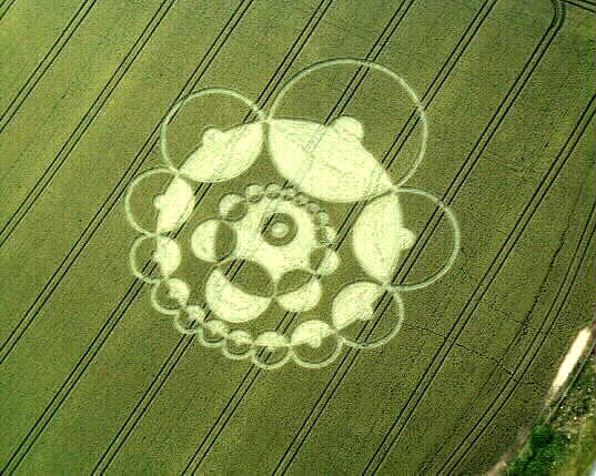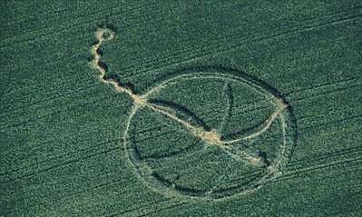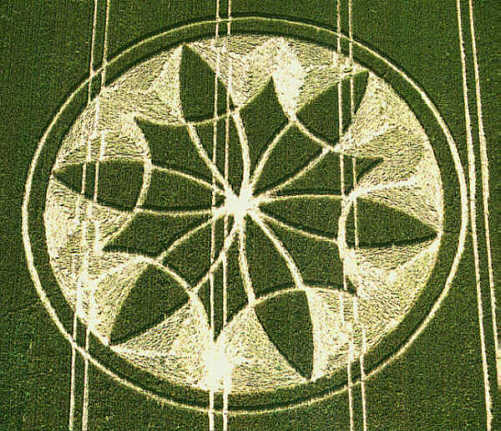This pictures shows marks in cornfields generated by aliens using interdimensional technology.