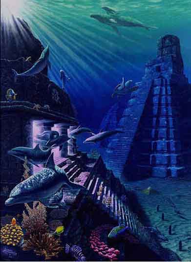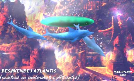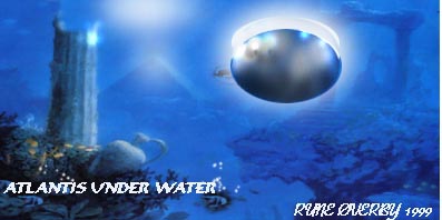 et nytt kunstbilde av ufos under vann der de "dykker" ved undersjøiske bygningsrester fra ATLANTIS - SENERE I BOKEN SKAL VI SE AT ANTE FÅR LOV Å BESØKE EN UNDERSJØISK BASE HER PÅ JORDEN. Han førklarar att vi skall resa till samma planet som førra gangen, men jag er tillbaka innan morgonen. Han vill visa mej en del saker som vi har på jorden alldeles har missuppfattat. Jag frågar varfør just jag och inte andra som kanske skulle vara lämpligare. Han svarar att det finns även andra som varit med om samma saker som jag och att det skall bli flera. Han sier - du er en av de manga som har en annan tro än vi på vad ni kallar kristendom och historia. Jag svarar att det finns tusentals som inte tror på Gud. Han säger att innerst inne tror nog de flesta av er på Gud fast ni inte vågar visa det. Han vill visa mej vad som er sanningen bakom vår Gud och Jesus som vi leser och predikar om. Han vill även visa vad som kommer att hända om vi envisas med att tillverka och använda kärnvapen. Hur skall det ga till? frågar jag, samtidigt som jag känner att vi har lyft och er på väg från jorden. -Du skall få se prov på självførstørelse. Det fanns folk på en nästan likadan planet som er, som børjade tillverka kjernvapen før att strida inbørdes. Det børjade som på jorden med ett krig mellan olika grupper av individer och slutade med att nästan allt liv utplanades. Vad som finns där idag er endast växtlighet och några stationer som vi har byggt før att førsøka bygga upp en ny civilisation. Det er detta vi skall visa er så ni kan førstå vad det er ni håller på att gøra med er sjalva och er planet. Andra har redan sett det, och nu er det din tur. Vi har studerat er sen flera tusen år tillbaka och samma mønster bildas hos er som det gjorde hos DELEFERNA. "Den ni kallar Gud (altså her i betydningen den gammel-testamentlige "gud" - den kosmiske ALLMAKT er noe helt annet, den vi alle er en del av, og som opplever gjennom bl.a. oss - men som styrer utviklingen gjennom vesener på høykosmiske plan -rø-anm) - var en delef som satte sin son før att tala om før er att ni er inne på fel väg. Men han var inte den ände av deleferna som placerades ut på jorden. De fanns på manga andra ställen men blev inte lika uppmarksammade som Jesus på grund av att han utførde en del førbjudna saker som att bota sjuka. Det var inte så konstigt, før hans far var läkare på sin hemplanet. När detta hände så var den planeten redan da langt føre er på alla områden. Inkafolkets førfäder var en delef, i Indien och Sydeuropa fanns också flera delefer. Dom undervisade inte bara i rättfardighet, utan också i en byggnadsteknik som ni idag har glømt bort."Han frågar mej om vi i dag skulle kunna använda stenen på samma sätt som skedde i Inkariket och Egypten i forntiden, om vi skulle kunna spränga bergsrum (huler) som er lika släta(jevne) som glas. Han sier: "ni har inte lärt er att skära sten i skivor, men skulle ni hitta det ni kallar Atlantis, så skulle hela er civilisation ändras på några år! Jag skall avsløja før dej att både inkas och andra gamla kulturer använde maskiner till det mesta av sitt arbete. Dom fick sina maskiner av deleferna. Ni har inte hittat några rester av dem, men sådana finns bland annat i Atlantis och även hos inkas och på några andra ställen." Jag frågar honom om det inte finns bevis øver hela jorden på deras och delefernas existens. - Jo, men ni har bara inte lärt er att tyda och tolka alla tecken och saker som deleferna lämnat kvar. Jag frågar också om Atlantis, vad det var och var det nu ligger, men får ett minst sagt egendomligt svar.: Børja leta i er historia, men tolka den rätt denna gang, så hittar ni det! Leta inte endast på land utan även utanfør Faros, så får ni en utgangspunkt! Jag känner att det har slutat vibrera, och det har blivit ljust i fønstret på veggen. Jag känner igen platsen från førra gangen och undrar vad som skall hända nu. Han säger att vi skall byta farkost, før att denna skall laddas om. Jag undrar om jag kan gå ut, men det er tydligen inte något problem. Väl ute så känns det som på sommaren hemma, lagom varmt fast mycket torrare luft. Vi går genom en tunnel och hamnar ute på en gata med dom här konstiga husen på begge sidor. Jag kan inte lata bli att känna på en vägg, før dom er så underligt släta. Han säger att det er sten och metall. "Vi har samma metaller och sten som ni använder till era byggnader, men vi använder en annan legering i vår metall." Vi er framme vid en annan farkost och går in. "Nu skall jag visa dej en førstørd planet, något som även kan bli ert øde (betyr skjebne på norsk)!" Denna gang får jag inte sitta upp utan får lägga mej ner på en liknande historia som jag satt i førut. Jag tror att jag sov en stund, før jag mindes ingenting från den stund vi åkte iväg - till dess att jag blev ombedd att sitta upp och titta ut. Vad jag nu får se er något fruktansvart, inte minst med tanke på att vi kan gøra likadant før oss sjalva på jorden. Stader som er nästan begravda i sten och sand, byggnader - och skogar som er dränkta i vatten, sønderbrand och smält metall! Det otäcka i allt detta er att det som er någonlunda helt, er så likt det som finns på vår egen jord. Han säger: "Det er inte så konstigt om det liknar jordiska ting, før det er deleferna som har lært er att bygga upp det ni har och som gett er tekniken och vetenskapen. Det enda som dom inte hade med seg er djuren som du kan se hos oss." På ett ställe ser jag att dom håller på att bygga några hus av sten som dom skär ut ur ett berg før att sedan sätta på en metallkonstruktion. Ett stort stenblock tas från berget till byggplatsen med något som liknar en pram. Men den svävar i luften och lyftes sedan som av en osynlig hand ner på en plattform där stenblocket placeras mellan två stora maskiner som liknar stridsvagnar. Det blixtrar t