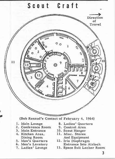 This diagram of the Scout Ship that returned Bob Renaud and Lin-Erri from the Undersea Base under the Pacific Ocean was drawn by Bob after his return to his home in Massachusetts. He was most impressed at what he had seen and witnessed on this long trip. Picture from the book.