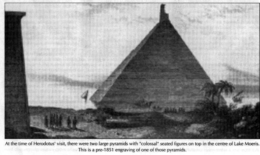 The Fayum Oasis district, just a few kilometres outside the boundary of the Memphis Nome, presents a site of unusual interest. It was in that lush, fertile valley that Pharaohs calling themselves the "masters of the royal hunts" fished and hunted with the boomerang (1), Lake Moeris once bordered the Fayum Oasis and on its shores was the famous Labyrinth, described by Herodotus as "an endless wonder to me". The Labyrinth contained 1500 rooms and an equal number of underground chambers that the Greek historian was not permitted to inspect, according to Labyrinth priests, "the passages were baffling and intricate", designed to provide safety for the numerous scrolls they said were hidden in subterranean apartments. That massive complex particularly impressed Herodotus and he spoke in awe of the structure: